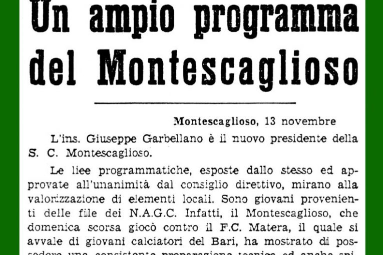 locandina peppe lomonaco (3) Montescaglioso, storie di ieri e -forse- di domaniFra i vari appuntamenti culturali in programma nella nostra provincia in questa caldissima estate è doveroso segnalare quello che si terrà a Montescaglioso il prossimo 9 agosto nel chiostro di quella abbazia benedettina.L’occ...