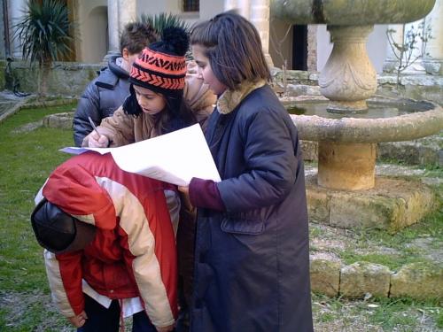 Durante la visita l’operatore, ha il compito di sdrammatizzare eventuali difficoltà nel descrivere i manufatti oggetto della ricerca, ma anche di integrare le descrizioni dei bambini. L’attività è stata finora realizzata nell’abbazia di Montescaglioso ma è replicabile anche in altri contesti ove sia disponibile un monumento o uno spazio ricco di suggestioni e nel quale sia possibile per i ragazzi circolare liberamente nella massima sicurezza ed autogestire il rapporto con l’ambiente e l’edificio.