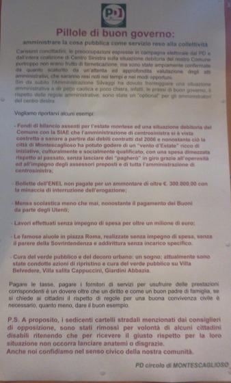 Si pensi che a Marconia di Pisticci, in occasione della prima festa del disabile lo scorso 23 luglio (http://www.marconia.it/prima-festa-del-disabile-a-marconia.htm), l’associazione A.D.A.M. ha invece esplicitamente chiesto alla propria Amministrazione la installazione dei pannelli con il medesimo messaggio che qui a Montescaglioso avrebbe invece urtato sensibilità e coscienze, stranamente ridestatesi con l’avvento della sinistra al governo della città.