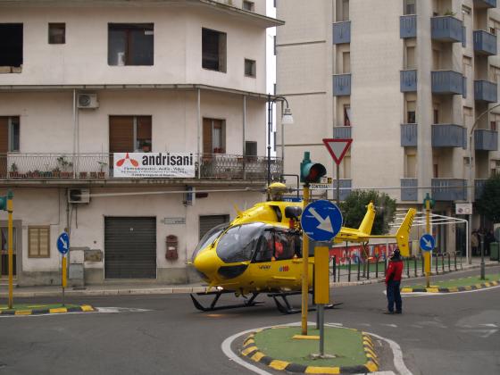 Ho fatto i complimenti al pilota per la manovra stretta stretta di atterraggio, ma lui ha detto che per loro non c’è nulla di eccezionale, sono allenati in quanto operano sempre insituazioni improvvisate e di emergenza. Ha scelto il punto sulla cartina, altrimenti sarrebbesceso al Campo sportivo, ma da lì ci avrebbe messo il doppio del tempo l’ambulanza poi a raggiungerlo (ogni secondo è prezioso).