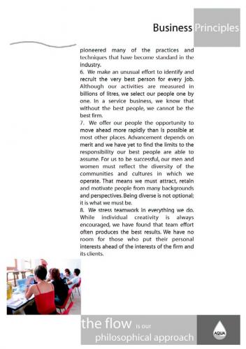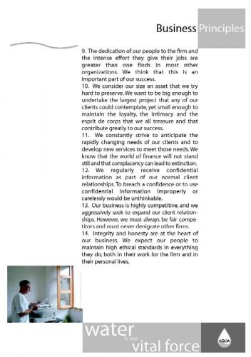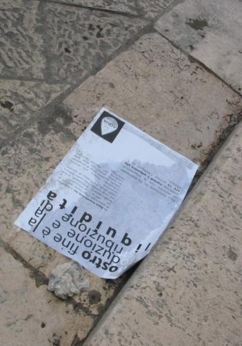 Si prepara tutto nei minimi dettagli: la carta intestata della compagnia, la certificazione delle azioni; finanche la tenuta manageriale dei rappresentanti della fantomatica compagnia svizzera. La carta intestata contiene le coordinate dell’impresa ( scritte come d’uso in piccoli caratteri ). Capitale versato 4.543.652.445 litri d’acqua. Banca d’appoggio del capitale: cisterna centrale dell’abbazia di Montescaglioso. Tipologia delle azioni: taglio minimo, 1 litri di acqua di rubinetto; azioni privilegiate, 2 litri di acqua minerale; azioni a lunga scadenza, 3 litri di acqua di sorgente (preferibilmente la Festola); azioni gold, 200 cl di acquasanta. Nel frattempo, però, il gruppo polacco ha organizzato l’opposizione no global alla multinazionale dell’acqua e programma diversi interventi più o meno clandestini. Sui pluviali delle case, sugli sportelli dei contatori dell’acquedotto, compaiono adesivi con parole d’ordine a favore della libera disponibilità del bene acqua.La presentazione dei programmi della multinazionale si svolge nel chiostro dell’abbazia con tanto di computer e proiettori digitali. C’è un bel numero di partecipanti ed alcuni si presentano con boccioni d’acqua. L’articolazione del piano di investimento è presentata in inglese, provocando la viva protesta dei contadini presenti, immediatamente sedata dall’intervento di un interprete. I no global, però, sono in agguato e nel bel mezzo della presentazione intervengono con un bombardamento dal tetto dell’abbazia, effettuato sul management e sui potenziali sottoscrittori con palloncini pieni d’acqua. L’iniziativa si conclude con l’incavolatura degli inzuppati e la ingloriosa fuga del rappresentanti della multinazionale svizzera.