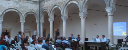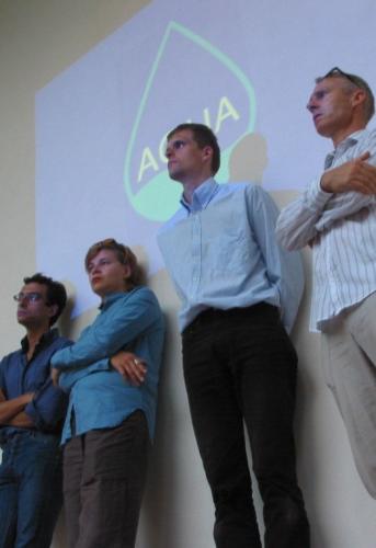 Acqua senza la “ c “ non è un’ errore. E’il titolo di un progetto realizzato durante uno scambio giovanile del 2003 con un idea partorita da una coppia di amici finlandesi. Il progetto nasce dalla illustrazione delle modalità di gestione delle residenze dei govani da utilizzare durante lo scambio. Il gruppo organizzatore chiarisce che normalmente in estate a Montescaglioso la disponibilità di acqua si riduce e pertanto i giovani provenienti dal nord devono entrare nella logica di un uso parsimonioso della risorsa idrica. Ed ecco l’idea, una iniziativa da dedicare alle problematiche collegate all’acqua: risparmio, schiavitù dalla privazione dell’acqua del terzo mondo, una risorsa più preziosa del petrolio. Da organizzare con un’azione inaspettata e spiazzante. Cancellata la solita idea della mostra e del seminario, il gruppo di progettazione finlandese al quale si sono uniti anche i polacchi, escogita l’inghippo. Con una serie di manifesti e comunicati stampa, si annuncia che a Montescaglioso una società svizzera “ AQUA Investment inc. “ intende aprire la propria sede operativa in Basilicata, regione al centro delle problematiche inerenti la gestione della risorsa idrica. Si terrà, quindi, nell’abbazia una presentazione pubblica del piano di investimento e sarà avviata al campagna di sottoscrizione delle azioni.