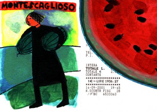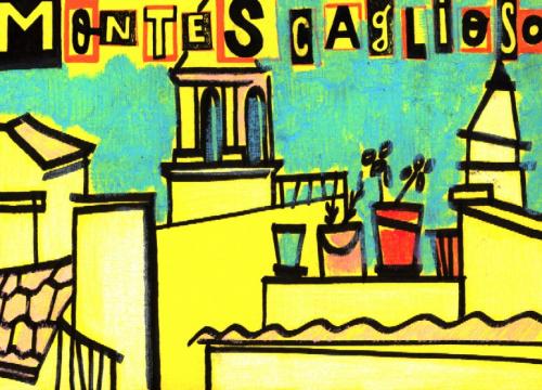 Un’idea del gruppo sloveno realizzata nel 2001. Dopo tante attività caratterizzate dall’uso prevalente di elementi tecnologici, video clip, foto digitali, o da performances ed allestimento, la proposta di tornare all’antico: un concorso di pittura. Il tema è ovviamente Montescaglioso ed il metodo è il classico della pittura all’aria aperta. Quindi scorci panoramici, personaggi, luoghi, particolari. Per circa due settimane circa quaranta giovani si sono scatenati realizzando opere in formato cartolina, da qui il titolo, come se dovessero inviare a qualcuno la foto o la cartolina ricordo del soggiorno a Monte. Disegni al tratto, acquerelli, piccoli dipinti alla tempera, è stato prodotto di tutto, proponendo approcci e punti di vista inediti del paese. Esiste una raccolta digitalizzata del prodotto perché, poi, ognuno del proprio intervento ha fatto di tutto: invio a casa o agli amici, regalo ai residenti, quadretto da conservare accuratamente. Al termine del progetto è stata organizzata una mostra in Piazza Racamato, la prima mostra nella piazzetta / salotto, con una notevole partecipazione di pubblico invitato a segnalare la cartolina più accattivante, con il risultato di un ex aequo tra un dipinto della Lettonia ed uno della Slovenia. L’abitudine a dipingere ed a rappresentare il paese si è mantenuta, senza il concorso finale, anche nelle attività successive. Da altri giovani sono arrivati prodotti di notevole levatura e tra questi una serie di 10 rappresentazioni di Montescaglioso firmate da una ragazza polacca, con l’inconsueto filo conduttore dell’alcool. Perciò il titolo della raccolta “ Montescaglioso alkolisos “ . Nelle opere realizzate con la tecnica del gessetto applicata a cartoni, bevono tutti, perfino i falchetti appollaiati sulle rete elettrica con il calice colmo o lo scheletro del dinosauro ritrovato sotto terra con accanto la bottiglia di birra.