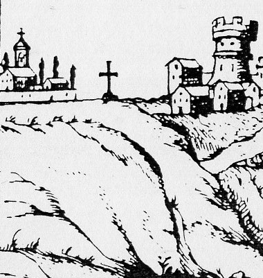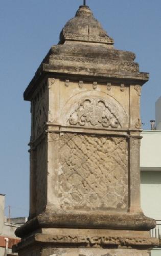 Sul sagrato della chiesa, un grande cippo in tufo, finemente scolpito e databile al secolo XVII, segnala il luogo di culto. Nel giardino si conserva ancora efficiente, un complesso sistema di raccolta delle acque piovane organizzate intorno ad una cisterna per la raccolta delle acque meteoriche e ad un profondo pozzo scavato nella cantina del monastero, in grado di intercettare la falda acquifera posta a notevole profondità.