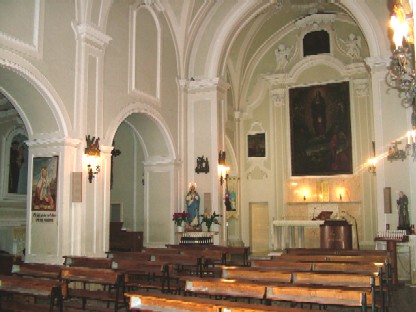 La chiesa è formata da una navata centrale e da una laterale a sinistra. Sulla destra dell’aula principale, si aprono una serie di grandi archi che ospitavano altari e cappelle. La chiesa conserva un buon numero di tele e, nella navata laterale, la tomba di Niccolò Grillo che aveva contribuito alla costruzione del convento. Sulla lastra che chiude la sepoltura, una lunga epigrafe celebra il contributo dei Grillo alla realizzazione del convento. La semplice facciata della chiesa è decorata da una nicchia con la statua dell’Immacolata ed un piccolo campanile cuspidato realizzato in tufo. Addossata alla controfacciata della chiesa esiste ancora una cantoria tuttora utilizzata per gli uffici notturni.