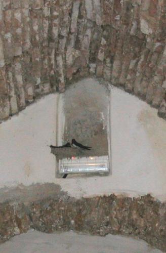 La porta della cantina, per non innalzare la temperatura interna, è sempre in legno. Sulla sommità sono aperte delle feritoie che consentono il ricambio dell’aria ma anche l’entrata delle rondini che nidificheranno nella grotta contribuendo a mantenere sotto controllo il gran numero dei moscerini che prolificano grazie alla presenza del vino e dei mosti. La presenza della rondine è di buon auspicio e tradizionalmente nessun cantiniere si sognerà mai di disturbare i nidi.