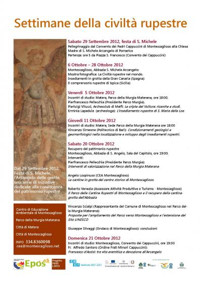A partire dal 29 Settembre 2012, Festa di S. Michele, l’Arcangelo delle grotte, una serie di iniziative dedicate alla conoscenza del patrimonio rupestre.