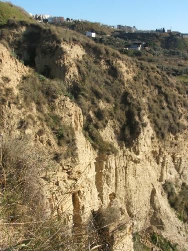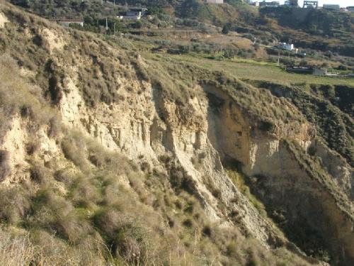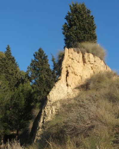 Le ultime propaggine della collina di Montescaglioso a Torre Vetere, sul versante occidentale del paese, precipitano in un vasto sistema di calanchi, fossati ed affioramenti argillosi o alluvionali di grande suggestione paesaggistica. Tra tutte le formazioni la più imponente è Monte Vetere con la caratteristica forma a cono rovesciato capace di segnare profondamente il profilo di Montescaglioso. Il Monte, presenta il versate nord orientale coperto da un fitto bosco e qullo suoccidentale, cioè più espsosto al sole, quasi privo di alberi. Si potrebbe dire che questo versante di Monte Vetere costituisca un primo esempio di desertificazione a scala locale provocata dai mutamenti climiatici. Infatti ben prima che un incendio doloso distruggesse le poche alberature superstiti, gran parte della vegetazione ad alto fusto era stata distrutta dalla combinazione micidiale tra l’arido subratrato argilloso, la continua esposizione al sole e la diminuzione della piovosità. Poco oltre, il terreno diventa sempre più scosceso ed è inciso da profondi calanchi e fossati in continuo avanzamento a causa dell’erosiome provocata dall’acqua. L’intero terrazzamento a valle di Monte Vetere, con direzione sudovest – nordest, presenta a circa 300 metri dal piede della collina, alte pareti quasi verticali formate da paleofrane ove si osservano suggestivi e vasti fenomeni di erosione e ruscellamento. E’ possibile notare la impressionante sequenza dei riporti e delle stratificazioni determinati dai sedimenti marini che al tramonto si colorano di rosso fuoco: tutta la zona è ricca di fossili affioranti in superfice. Negli anni cinquanta l’area è stata rimboschita con un programma di piantumazione e sistemazione idrogeologica lungo e impegnativo con il quale è stata realizzata una grande area boschiva molto vicina al paese e facilmente raggiungibile a piedi.