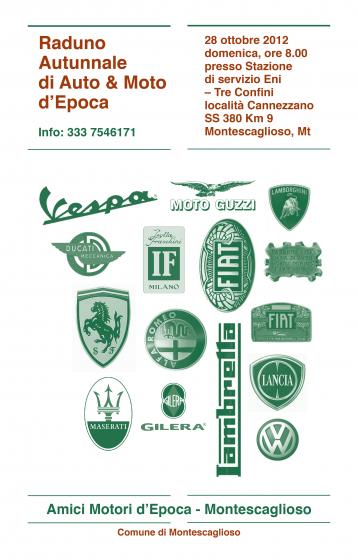 Raduno Autunnale di auto & moto d’Epoca Creato da ZODD Data:22 Ottobre 2012 in: Eventi Lascia un Commento 1150 Visualizzazioni Montescaglioso Stazione Eni 3 confini