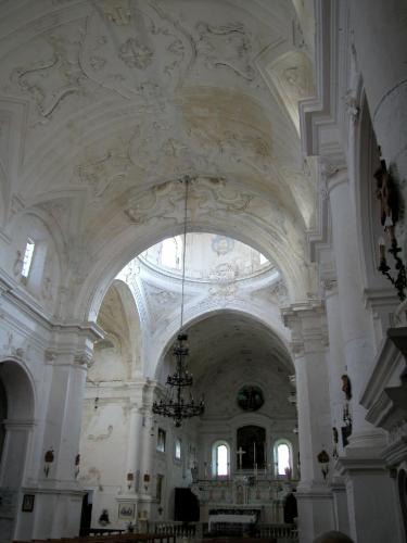 Agli inizi del secolo XVIII, ancora una volta i monaci decidono di adeguare la chiesa ai propri tempi e realizzano un nuovo grandioso apparato decorativo in stucchi occultando le decorazioni cinquecentesche in tufo. Acquistano un nuovo altare maggiore commissionato ad un esperto marmoraro napoletano e numerosi dipinti su tela da collocare nel coro e nel transetto. Nel 1784 la comunità si trasferisce a Lecce attuando una scelta preparata da anni. Nel 1776, infatti, i monaci avevano già venduto i preziosi altari in marmo della chiesa capitalizzando la liquidità necessaria ad acquistare il nuovo monastero di Lecce individuato nell’ex collegio dei Padri Gesuiti con l’annessa chiesa del Gesù ove trasferiscono gran parte delle opere d’arte che si conservavano nella chiesa di Montescaglioso. Altre opere appartenute alla abbaziale caveosana saranno vendute a chiese di Matera dove ancora oggi è possibile ammirarle: l’altare maggiore nella Cattedrale; un acquasantiera ed alcuni altari nella chiesa di S. Giuseppe; altri altari nella chiesa del Carmine. L’organo fu venduto alla Chiesa Madre di Pomarico. Il coro in legno ed alcune tele furono trasferite a Lecce. Oggi la grande chiesa benedettina, la quarta a partire dal secolo XI, si presenta in una elegante e luminosa veste barocca ma spoglia di arredi e dipinti. Parte delle tele sono a Lecce, qualche affresco è stato riportato alla luce altri attendono ancora un adeguato intervento di restauro. La chiesa, però, nasconde ben altri misteri. Nell’androne le tracce di un nartece duecentesco con un affresco di sec. XV nascosto dalla calce. L’alzato del perimetro murario medievale venuto alla luce negli anni novanta, è sicuramente, collegato a strutture presenti nel sottosuolo risalenti alla stessa epoca a loro volta impiantate sui resti dell’abitato indigeno di sec. VII a.C così come dimostrato dagli ultimi scavi archeologici. Davanti al campanile sono stati rintracciati i resti di una fossa di fusione per campane. Sotto l’attuale livello di calpestio si conservano camere sepolcrali o cripte, una delle quali rintracciate nel 1991 con le sepolture dei monaci perfettamente intatte. Insomma una complessa stratificazione capace, con adeguate ricerche di restituire una parte significativa della storia di Montescaglioso e della Basilicata.