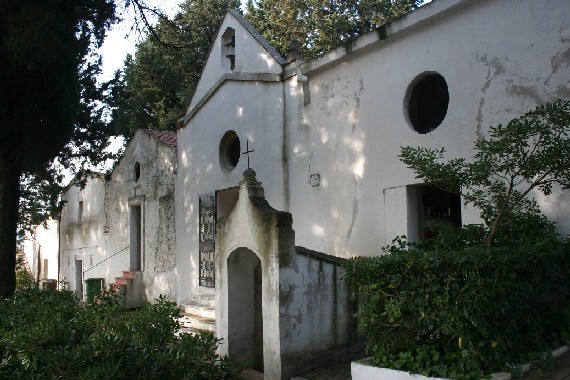 S. Maria del Soccorso (Trani). La chiesa del cimitero nella periferia della città, corrisponde alla grancia appartenuta ai Benedettini di Montescaglioso intitolata a S. Maria del Soccorso e pervenuta all’abbazia di S. Michele intorno al 1632. In origine era un piccolo convento di frati carmelitani: soppresso a causa dell’impossibilità di garantire alla comunità le entrate necessarie alla sopravvivenza, fu unito all’abbazia di Montescaglioso. La chiesa è stata recentemente restaurata ed è ancora officiata.
