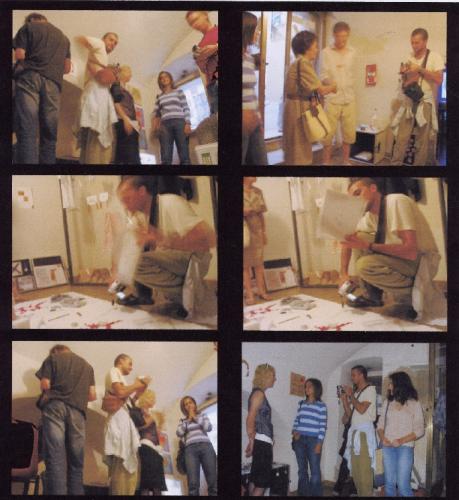 La “ merce “ del negozio è costituita da piccole opere d’arte realizzate appositamente o donate da giovani artisti oda oggetti di uso quotidiano che diventano “ arte “ nel processo di astrazione operato dall’intervento dell’artista. Il negozio, nella sua prima apertura a Rotterdam ha così messo in moto un primo flusso di scambi col sistema del baratto: chi lasciava un altro oggetto o un altra opera, poteva scambiarla con quelle già disponibili. Stesso meccanismo nelle altre città europee. Il via vai di artisti e di gente comune rinnova continuamente le disponibilità del negozio ma crea anche relazioni puntiformi e a rete nel vecchio continente. Un oggetto parte da Rotterdam, si ritrova ad Oslo, poi magari è scambiato a Monaco e così via. Il negozio è appunto “ mobil “ e quindi giunge anche a Montescaglioso nel 2002. Gli olandesi aprono lo shop in un piccolo locale di Corso Repubblica. Si effettua la normale presentazione al pubblico e si attrezza una piccola vetrina. Gli oggetti sono tanti: dalla bottiglietta di plastica, trasformata in scultura, ai pupazzetti da collezione per finire a qualche piccolo oggetto da sexshop che in qualche caso disorienta gli “ acquirenti “ locali. A Montescaglioso il pubblico partecipa, entra, chiede, effettua qualche baratto. Qualcuno cede una poesia in cambio di un tatuaggio. Anche qui il “ mobil shop” lascia qualcosa, si arricchisce di altro e crea relazioni tra persone, oggetti e luoghi per proseguire poi il proprio viaggio verso chissà quali altre mete.