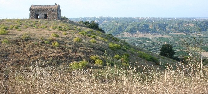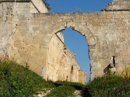 S. Lorenzo a Murro (Montescaglioso). La grancia fortificata e la chiesa di S. Lorenzo a Murro costituiscono l’insediamento benedettino più antico presente nel territorio di Montescaglioso. La prima attestazione risale all’anno 893 quale proprietà dell’abbazia benedettina di S. Vincenzo al Volturno, presso Isernia, una delle più importanti comunità monastiche del Meridione longobardo. Nel 1099 la chiesa e il feudo si ritrovano in possesso dell’abbazia di Montescaglioso e probabilmente nel passaggio da un monastero all’altro esistono gli elementi capaci di gettare luce sulle origini dell’abbazia di Montescaglioso. S. Lorenzo era al centro di un vasto feudo, circa 2000 ettari coltivato prevalentemente ad oliveti e vigneti ed ha sempre ospitato un grande frantoio più volte ricostruito ed ampliato, oggi ancora esistente. Il complesso, a due piani, occupa un terrazzamento recintato da muri e fortificazioni in gran parte crollati. In un’area del recinto si apre una grotta con una sorgente d’acqua. Murro, era nota per la dolcezza del clima e per i giardini che i monaci vi avevano piantato riuscendo anche a coltivare aranci ed altri agrumi. Il sito è descritto nel 1702 dall’abate Pacichelli (Il Regno di Napoli in prospettiva, Napoli 1702) che ricorda anche la tradizione popolare secondo cui i grandi massi che circondano la grancia sarebbero stati forgiati dalla spada del Paladino Orlando.