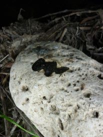 La prima foto mostra una fatta (praticamente una cacca) di lontra, la seconda è uno spraints (spruzzo, quello nero sulla pietra), con cui gli animali marcano il territorio.