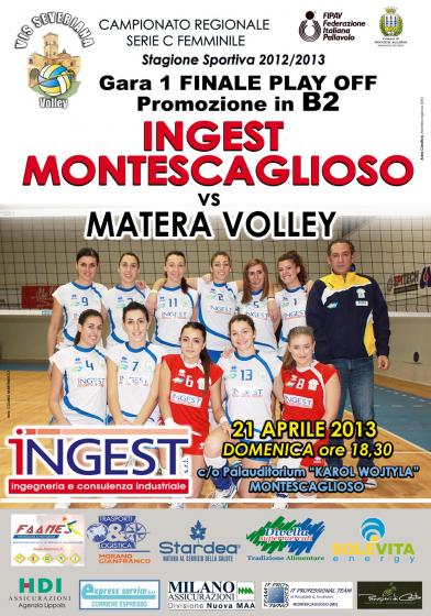 La gara vedrà di fronte le padrone di casa della INGEST MONTESCAGLIOSO, assolute dominatrici della fase regolare del campionato e vittoriose in due gare della propria semifinale, opposte alle ragazze del Matera, classificatesi al secondo posto della fase regolare e vittoriose in tre gare contro il quotato Melfi.