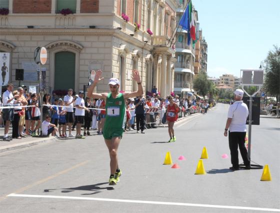 Domenica 23 Giugno 2013 20:56 Nettuno conferma l’ottimo momento di forma del marciatore dell’Amatori Atletica Acquaviva Inglese Giuseppe nella prova su strada dei 10km valida per il Campionato Italiano di Società di Marcia Allievi 2013. Ne la temperatura rovente nè il richiamo del mare della splendida cittadina Laziale hanno fermato il portacolori della marcia acquavivese che ha dominato i 10km di gara andando in testa dal primo giro ed incrementando il proprio vantaggio sino a concludere la gara con oltre un minuto di vantaggio sul secondo classificato Rigamonti Alessandro (Geas Atletica Milano). Per Inglese dopo la vittoria e titolo odierno convocazione al raduno nazionale dei marciatori in programma a Moena in trentino per preparare la partecipazione ai Campionati Mondiali Allievi di luglio che si disputerannoin Ucraina a Donetz. |