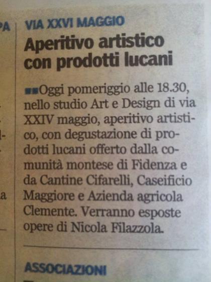 Un evento dal sapore di arte e gusto lucano è previsto per sabato 28 settembre alle ore 18,30 presso lo studio di Art e Design di Antonella Rabaglia al civico 62 di via XXIV maggio in Fidenza