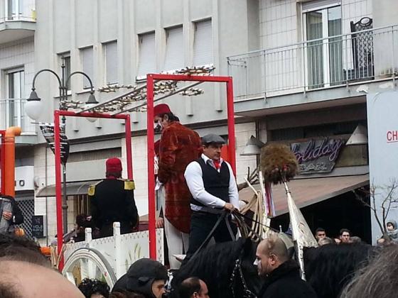 COn grande nostra meraviglia notiamo che ad aprire una delle sfilate carnascialesche più importanti d’Italia è “u ‘train” dell’Associzione MOntese Attacchi, guidato dall’auriga Donato Venezia. Sulle sponde laterali del mezzo sono presenti lo stemma della Città di Montescaglio, la nostra Abbazia e la Chiesa MAdre.