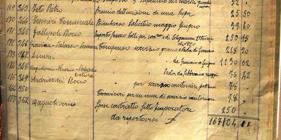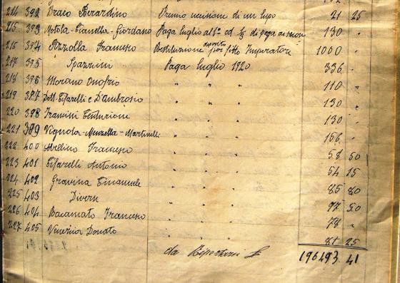 Giusto per avere qualche riferimento va considerato che sette giorni di lavoro per un operaio erano costate 21 lire e che la paga mensile di un dipendente comunale con mansioni non impiegatizie variava dalle 50 alle 100 lire mensili.
