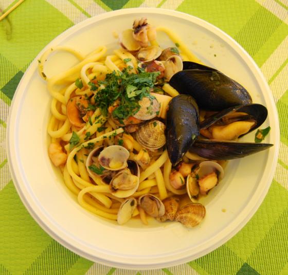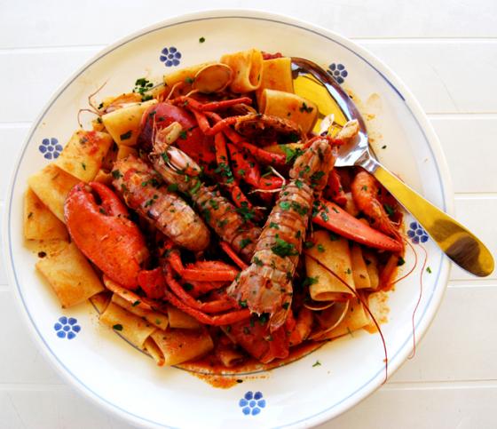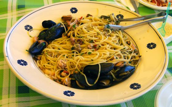 Dagli spaghetti o dal risotto al nero di seppia alla zuppa di pesce servito con fette di pane tostato, ai frutti di mare o ai gamberi innaffiati da freddo prosecco, ai tubettini fagioli e cozze, ai paccheri con gamberi, cicale e astice, all’impareggiabile impepata di cozze di cui si può bere, direttamente dal mestolo, il sughetto, alle linguine con le cicale o con le vongole, alla frittura di paranza, alla grigliata mista, alla tagliata di tonno, ecc.