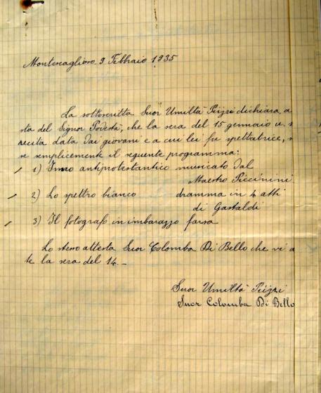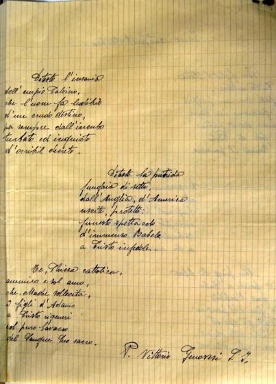 Ecco, ad esempio, il testo di un inno cantato nel corso di una recita tenutasi a Montescaglioso nel 1935.