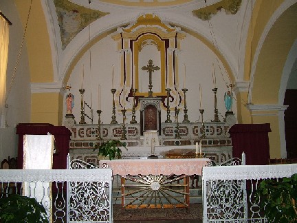 La facciata ricostruita dopo il 1827 è molto elegante e presenta una quinta chiusa da due lesene giganti, coronata da un timpano sovrastato da un grandioso campanile a vela. Al centro della facciata è collocato un portale con l’epigrafe relativa alla ricostruzione della chiesa ed una nicchia con la statua del Santo.