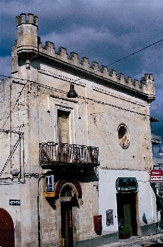 Il castello. Il fortilizio normmanno, di vaste proporzioni, era organizzato intorno ad un cortile con al centro una cisterna. Formato da tre piani aveva al proprio interno la chiesa di S. Caterina (attuale bar Italia) e verso est, una grande torre quadrangolare ancora oggi visibile. Aveva ospitato i Macabeo, la potente famiglia normanna feudataria del paese e Ruggero II, fratello di Emma, primo Re normanno, che aveva affrontato i baroni apulolucani in una delle ricorrenti rivolte, nella valle del Bradano presso Montescaglioso. Federico II aveva annesso il castello, a causa della sua importanza, alla rete delle roccaforti direttamente controllate dalla Regia Curia, cioè dall’amministrazione imperiale. Con gli Angioini, la postazione di Montescaglioso, perde la sua funzione strategica nel territorio e finisce sotto il controllo delle varie famiglie nobili che si succedono nel possesso feudale di Montescaglioso.