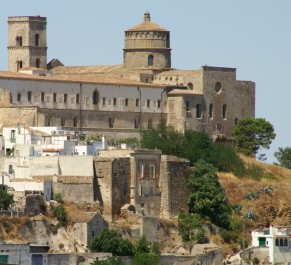 Dall’alto della collina Montescaglioso domina da quasi tre millenni l’ultimo tratto della valle del Bradano. L’abitato da sempre è stato difeso da possenti mura, sia nella fase indigena-greca che in quella medievale, delle quali oggi abbiamo una scarsa percezione. Demolizioni, crolli e addossamenti di edifici hanno modificato o quasi distrutto uno dei più vasti perimetri fortificati urbani della Basilicata. Dalla valle il paese doveva apparire come una grande roccaforte. Nell’anno 1003 sono proprio le fortificazioni a salvare l’abitato dal saccheggio saraceno. Fino al secolo XIX, il centro storico ha conservato i due castelli, longobardo e normanno, che costituivano i capisaldi, insieme all’abbazia, del sistema difensivo medievale. L’ampliamento della cerchia muraria nel sec. XI è concepita dai Normanni sulla base del ruolo strategico della posizione a chiusura della valle del Bradano, e quindi dell’accesso verso l’interno dal mare tramite l’approdo di Metaponto, in funzione antibizantina.