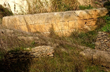 La cinta greca. L’abitato di Montescaglioso fin dalla fase italica e greca, evidenzia la presenza di fortificazioni di notevole complessità. Gli scavi archeologici realizzati negli anni ’90, hanno portato alla luce ai margini del centro medievale, un tratto di circa 30 metri di una cinta muraria greca di IV-III sec. a.C. realizzata con grossi blocchi di tufo cavati nella vicina Murgia. L’andamento della cinta ed altri indizi emersi nelle aree circostanti urbanizzate all’inizio del novecento fanno pensare che il perimetro si estendesse fino a comprendere un’area urbana pari a circa il doppio dell’attuale centro storico. In altre parole l’abitato medievale, attestato in fonti scritte fin dal secolo IX d. C., è il risultato di una contrazione significativa dell’abitato italogreco e dell’arroccamento della popolazione, nella fase altomedievale, nel punto più alto della collina. La cinta greca presenta caratteristiche costruttive e monumentali rapportabili ad analoghi manufatti di Metaponto, Sibari e Crotone. Costituisce un’unicum per i centri urbani del retroterra ed attesterebbe un ruolo politico, economico e militare dell’antica Montescaglioso nell’assetto della costa jonica, da Taranto fino ai confini calabresi, ancora poco indagato.