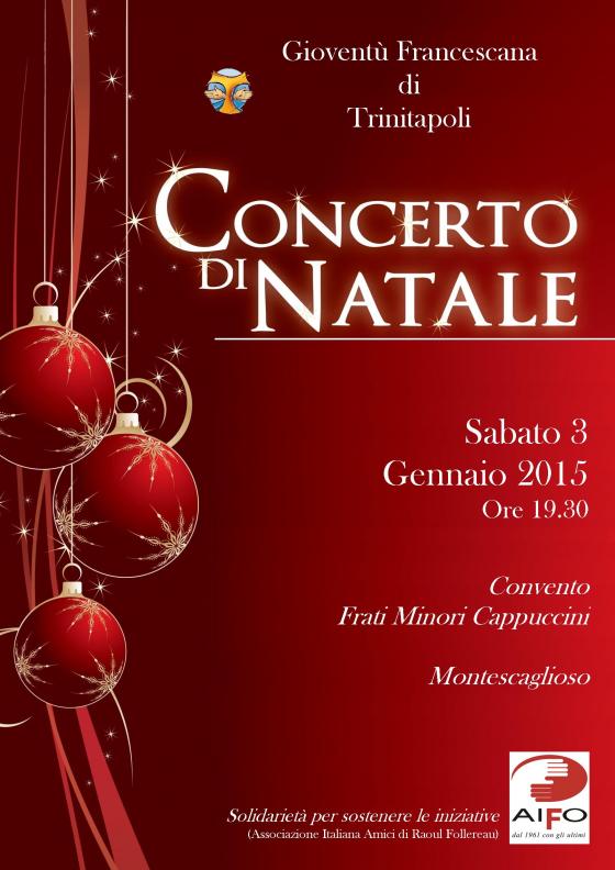 Il Concerto di Natale, con repertorio di canti della tradizione inglese, è organizzato dalla Gioventù Francescana di Trinitapoli (BT) a sostegno delle iniziative umanitarie dell’AIFO (Associazione Italiana Amici di Raoul Follereau). Non mancate!!!