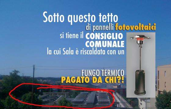 Sulle teste dei presenti, sul tetto, ci sono centinaia di mq di pannelli fotovoltaici (che abbiamo pagato e non funzionano) mentre nel Consiglio Comunale (al freddo) si disquisiva sui massimi sistemi del FUORI BILANCIO e del RISPARMIO.