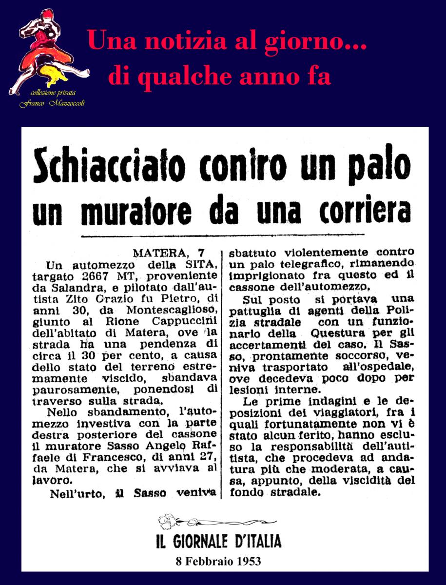 8 FEBBRAIO: SCHIACCIATO DA UNA CORRIERA Creato da Franco Mazzoccoli Data:08 Febbraio 2015 in: Senza categoria Lascia un Commento 1135 Visualizzazioni
