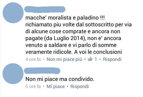 riporto commento facebook nascondendo il nome di colui che l’ha scritto