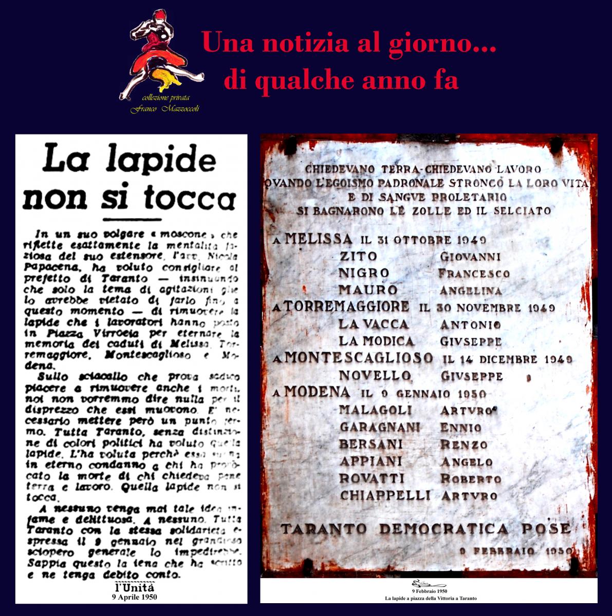 9 APRILE: LA LAPIDE NON SI TOCCA Creato da Franco Mazzoccoli Data:08 Aprile 2015 in: Senza categoria Lascia un Commento 981 Visualizzazioni