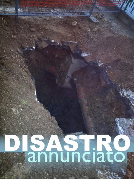 Tra la chiesa del Crocifisso e via Salnetro. Una voragine si è aperta lungo la dorsale che gira intorno al Centro Storico.