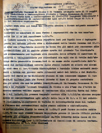 Tutto ciò detto, Il numero e la qualità dei sottoscrittori – per lo più tranquilli e sobri padri di famiglia – di condizione contadina, artigiana o impiegatizia, testimoniò tuttavia bene l’indignazione e il dolore che provò la maggior parte degli italiani quando si seppe della fine di Giacomo Matteotti, il deputato socialista punito con la morte per aver denunciato in parlamento i brogli e le violenze fasciste in occasione delle elezioni del 6 aprile 1924. Brogli e violenze che furono così gravi anche a Monte e in tutta la Lucania da far risultare la regione come la più fascista d’Italia! Qui, infatti, al solo PNF andrà il 79% dei voti, alla lista fiancheggiatrice il 14%. In totale il 93%, contro il 64,9%. attribuito a livello nazionale al PNF e alle liste apparentate.
