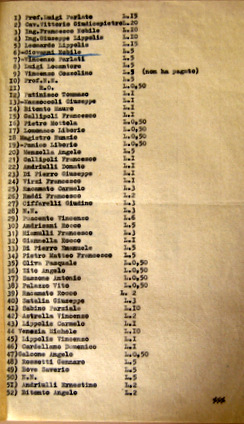 Elenco sottoscrittori per il monumento a Giacomo Matteotti. Alcuni nomi sono stati erroneamente trascritti