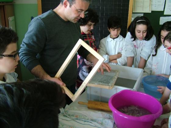 La seconda fase, prettamente manuale, ha coinvolto direttamente gli alunni che, guidati dalle insegnanti e operatori CEA, si sono cimentati nella realizzazione della carta riciclata. Lodevoli sono stati l’impegno, la volontà, l’entusiasmo nonché lo stupore manifestati dai giovanissimi allievi nel conseguimento dell’obiettivo/ risultato del prodotto finito.