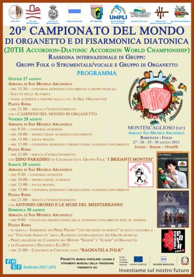 20° Campionato del Mondo di Organetto e di Fisarmonica Diatonica organizzato da Pro Loco Montescaglioso