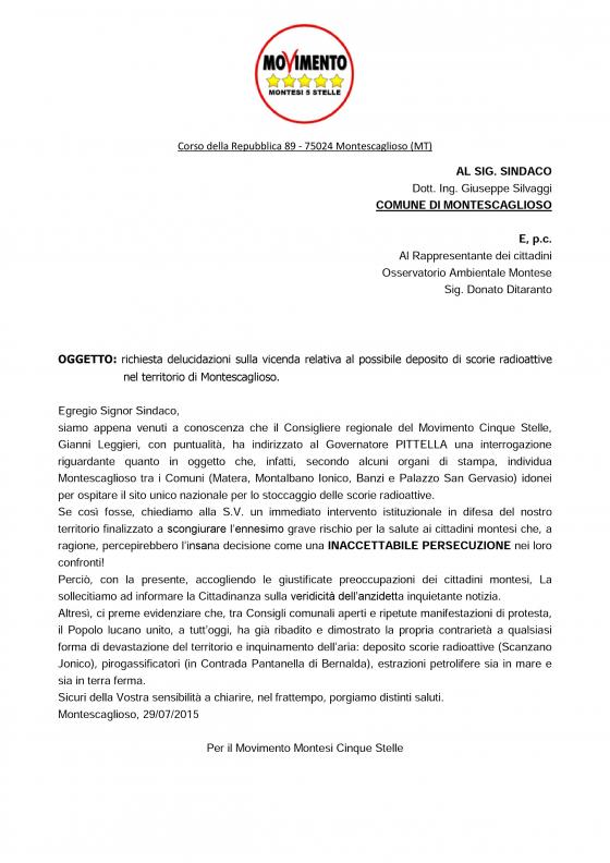 Riconoscimento da parte di AQP S.p.A., in favore del Comune di Montescaglioso dell’importo di € 170.000,00 che sarà oggetto dipagamento da parte di AQP S.pA. in due tranche di pari importo,
