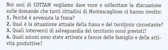 Scrivo al Sindaco e all’amministrazione Comunale per chiedere a nome di tutti i Cittadini un INCONTRO PUBBLICO in cui venire a conoscenza di come si intende avviare la RIQUALIFICAZIONE della ZONA COLPITA DALLA FRANA.