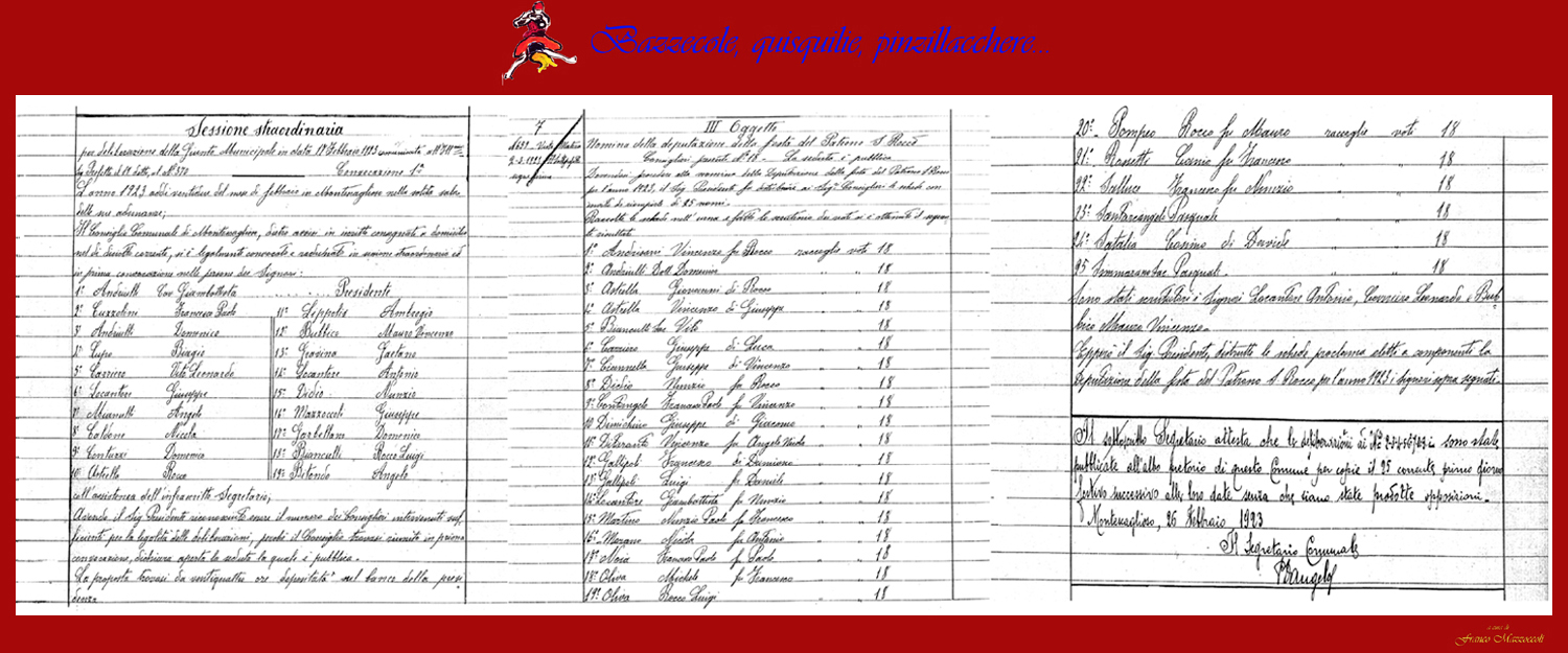 Nomina della deputazione della festa del Patrono S. Rocco – 1923 Creato da Franco Mazzoccoli Data:17 Agosto 2015 in: Senza categoria Lascia un Commento 1267 Visualizzazioni