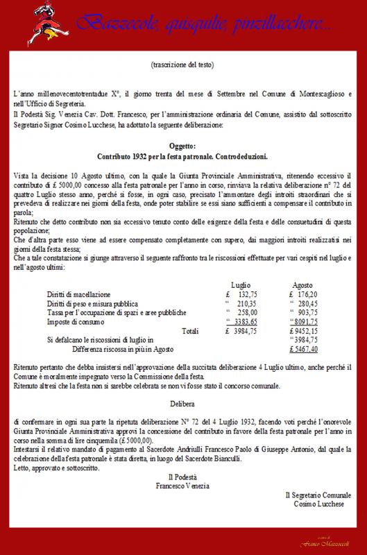 Contributo festa patronale 1932 – Controdeduzioni Creato da Franco Mazzoccoli Data:18 Agosto 2015 in: Senza categoria Lascia un Commento 1394 Visualizzazioni