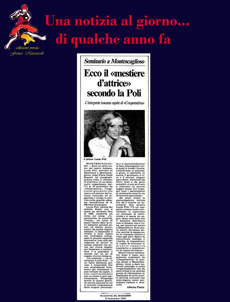 8 SETTEMBRE: LUCIA POLI, ATTRICE Creato da Franco Mazzoccoli Data:07 Settembre 2015 in: Senza categoria 1 Commento 1466 Visualizzazioni