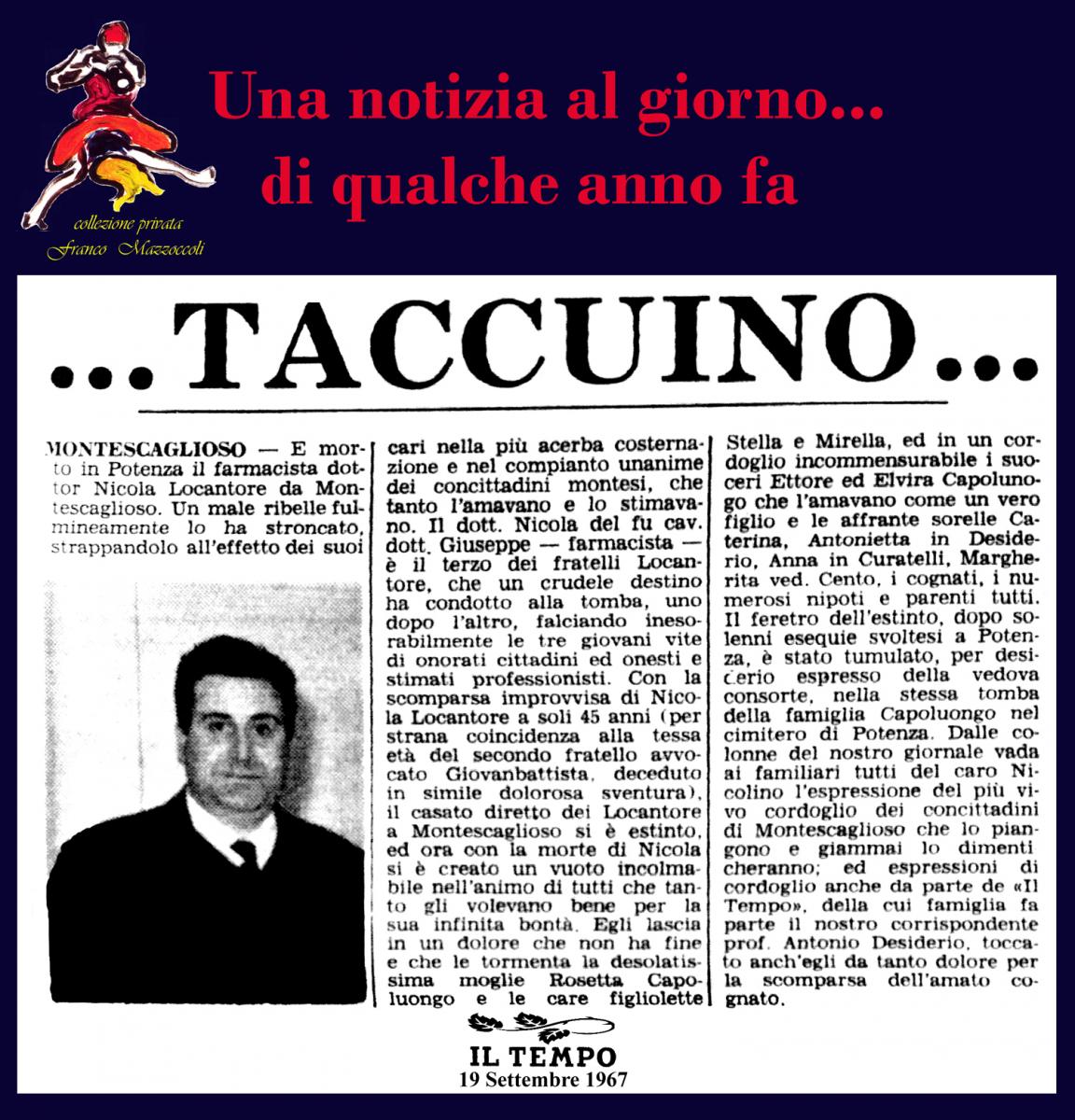 19 SETTEMBRE: IN MORTE DI UN FARMACISTA Creato da Franco Mazzoccoli Data:19 Settembre 2015 in: Senza categoria Lascia un Commento 1992 Visualizzazioni