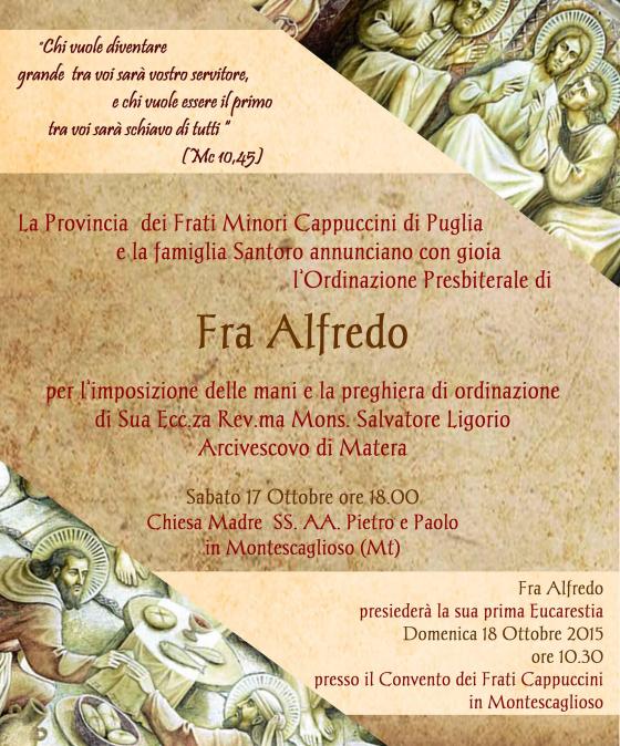 Ordinanzione Presbiterale di Fra Alfredo Creato da Montescaglioso Data:02 Ottobre 2015 in: Eventi Lascia un Commento 1586 Visualizzazioni Montescaglioso