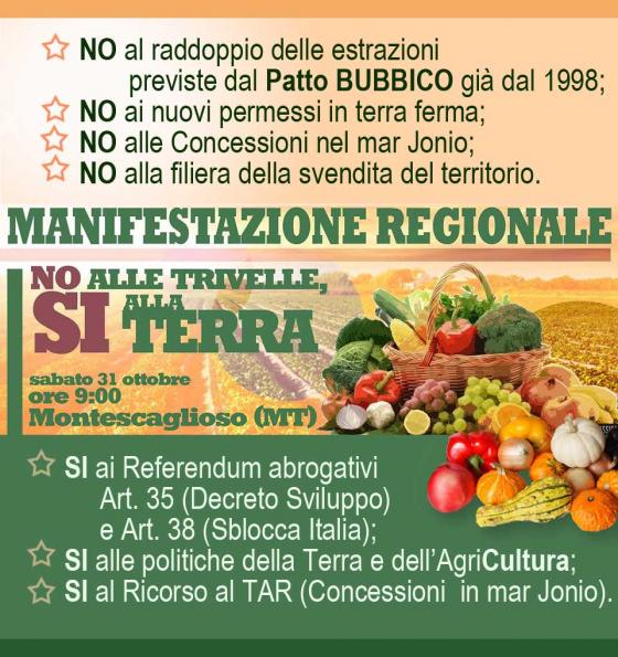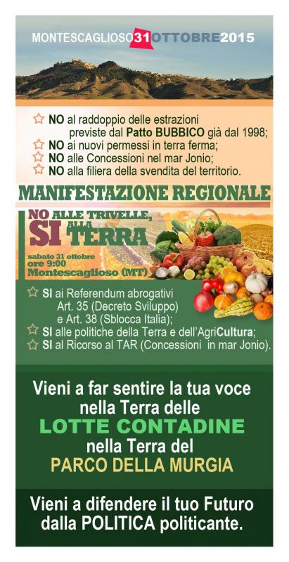 Il 31 ottobre 2015 tutti coloro che intendono DIFENDERE il CREATO sono invitati alla Grande Manifestazione Regionale che si terrà a Montescaglioso.