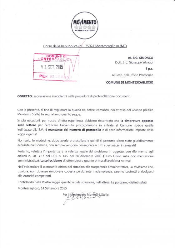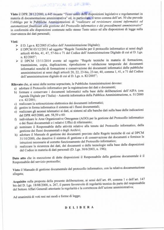 Dopo soli 15 anni dall’entrata in vigore della Norma (testo unico sulla documentazione amministrativa) art. 50>57 DPR n.445 del 28 dicembre 2000, grazie al gruppo locale Montesi 5 Stelle, l’amministrazione guidata dal Sindaco Silvaggi (PD) delibera l’approvazione del Manuale di Gestione Documentale. Qui sotto troverete la nostra richiesta e la delibera comunale. Ringraziamo per aver accolto la nostra richiesta.