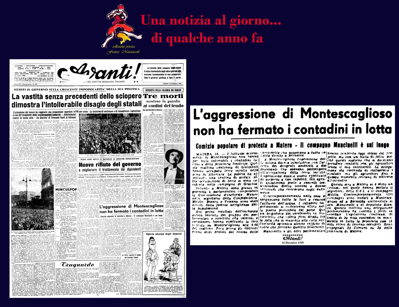 16 DICEMBRE: L’AGGRESSIONE DI MONTESCAGLIOSO Creato da Franco Mazzoccoli Data:16 Dicembre 2015 in: Senza categoria Lascia un Commento 1323 Visualizzazioni