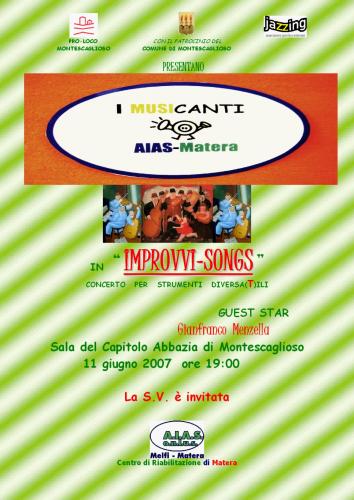 L’AIAS di MATERA è LIETA DI PRESENTARE : “IMPROVVISONGS” concerto per stumenti diversaTili che si terrà lunedì 11 giugno ORE 19;00 nella Sala del Capitolo dell’Abbazia di San Michele Arcangelo.
